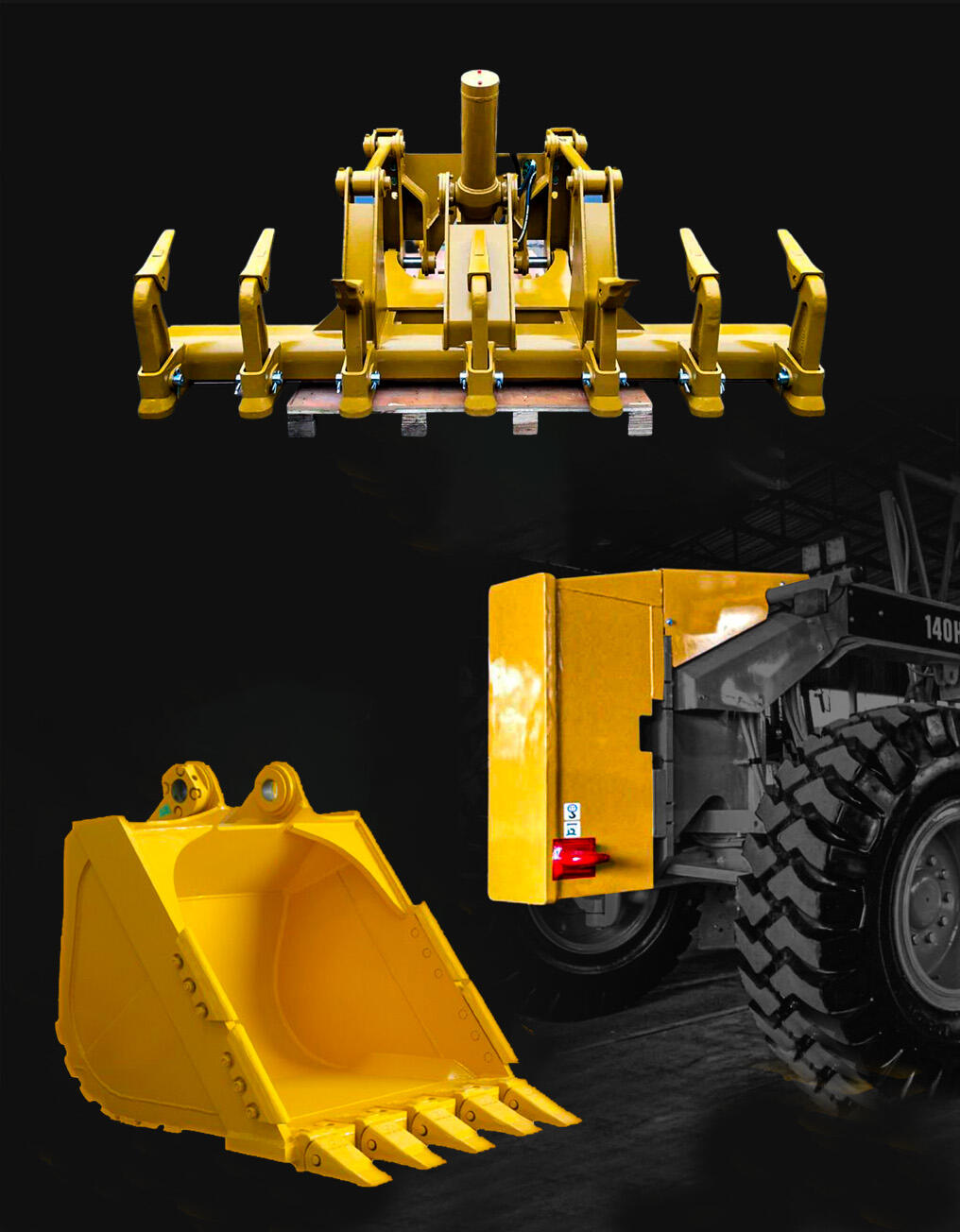 Rock buckets: Are used for fast clean-ups, sifting out debris & rocks, and gathering material away from buildings and obstructions.Grader Rippers: these loosen material to reduce grading time and fill voids while saving on edge wear.Push block and cover: this helps provide protection and prevent your fingers from getting too close to cutters or blades such as table saws, band saws and shapers.